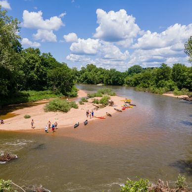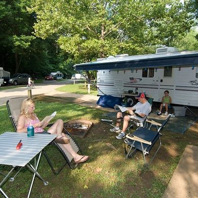 A full-service riverside & lakeside retreat. Features include electric & water hookups, 30/50 amp, playground, general store, shower & bath house, WiFi, pool, beach access, boat ramp, swimming, fishing, canoe/kayak/rafting options, cabins & tent sites, plenty of shade and quiet spots. Great for families wanting both adventure and comfort.