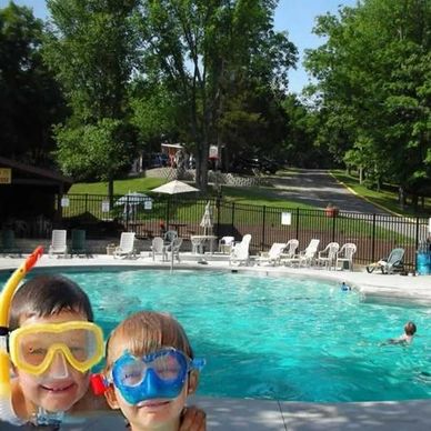 A family-friendly resort nestled in 35 wooded acres, just ½ mile from Six Flags St. Louis. Features include a large swimming pool & poolside pavilion, a natural-scaped mini-golf course, fun train rides, arcade, daily activities, themed events, and both RV + tent sites plus cabins & cottages. Luxurious amenities like fully equipped kitchens in cabins, AC/Heat, WiFi, full bath, outdoor deck & picnic sets make this spot as comfortable as it is fun.