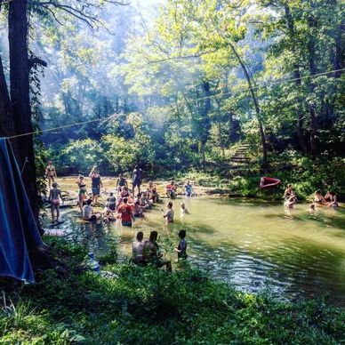 A peaceful working farm turned campground with both RV / tent camping. Offers private swimming hole on Joachim Creek, roomy sites, fire rings, community picnic and gathering areas, harmoniously mixed with farm life: pasture-raised animals, produce, rustic, relaxing and family friendly. No full hookups or showers currently. Great for those seeking a simpler, nature-immersed escape.